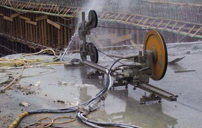 混凝土切開是指選用液壓墻鋸機、電動碟鋸機、水鉆或許馬路切開機等東西對混凝土構件、墻體、路面等進行切開的施工技能,它具有切開才能強,靜力無損,功率高,選用水冷卻,無施工粉塵等特色 :切開撤除:繩鋸切開是金剛石繩子在液壓馬達驅動下繞被切開物高速跋涉研磨然后完結切開作業。  運用繩鋸設備對混凝土切開拆 除···